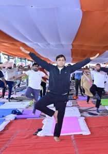 योग के माध्यम से ‘स्वस्थ राष्ट्र’ की संकल्पना को नई उड़ान:- कार्यक्रम में उपस्थित योग प्रशिक्षकों ने विविध योगासनों का प्रदर्शन किया और उपस्थित लोगों को प्राचीन विधाओं जैसे प्राणायाम, अनुलोम-विलोम, भ्रामरी, सूर्य नमस्कार आदि का महत्व समझाया।