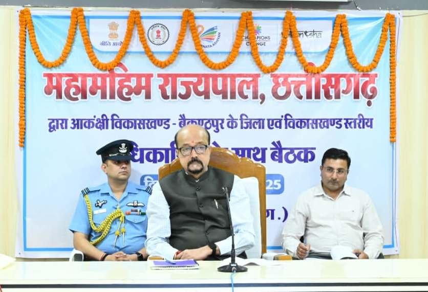 कोरिया 07 अक्टूबर 2025/ छत्तीसगढ़ के राज्यपाल श्री रमेन डेका ने आज कलेक्ट्रेट सभा कक्ष में बैकुण्ठपुर आकांक्षी ब्लॉक में संचालित विभिन्न योजनाओं का व्यापक समीक्षा कार्यक्रम आयोजित किया।